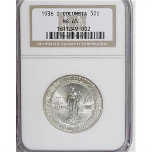 <B>1936 Columbia PDS Set MS65 PCGS.</B></I> The set includes: <B>1936 MS65 PCGS,</B></I> a satiny and lovely chestnut-gray Gem; <B>1936-D MS65 NGC,</B></I> refreshingly smooth, a few faint ebony streaks; and a <B>1936-S MS65 PCGS,</B></I> lightly toned and unabraded aside from a nick on the forehead.<BR><I>From The Silver Fox Collection.</B></I><BR><BR><b>Shipping:</b> Coins & Currency (<a target="_blank" href="http://www.heritageauctions.com/common/shipping.php">view shipping information</a>)