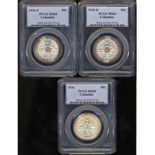 Part of an extensive consignment of PDS sets of this popular, inexpensive series from the 1930s. Each coin is toned with identical brown "tab" color from the issue card. Lot of 3 coins.