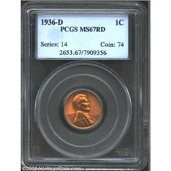 1936-D 1C MS67 Red PCGS. Fully struck and possessing nice mellow red color, this Superb example sits