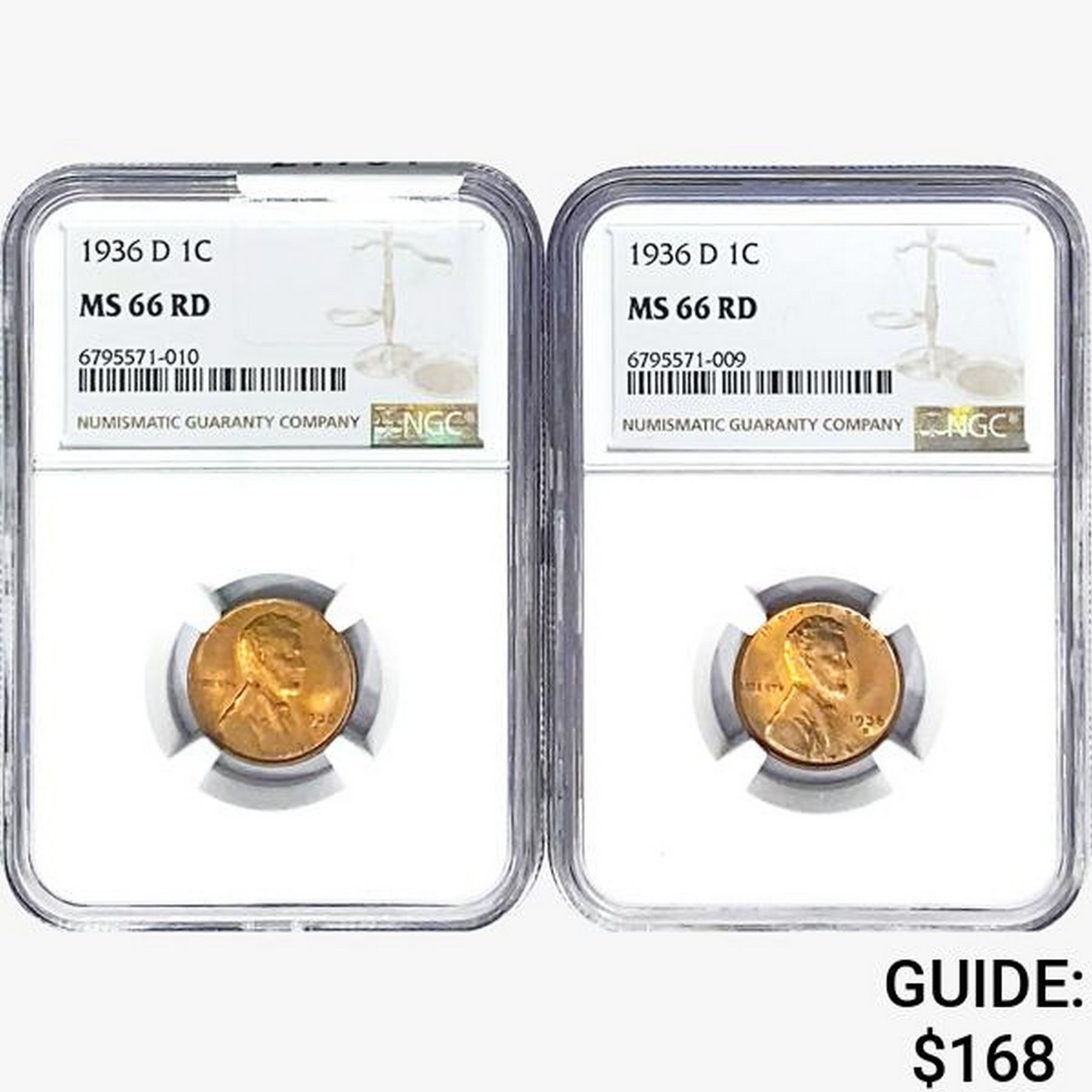 1936-D [2] Wheat Cent NGC MS66 RD