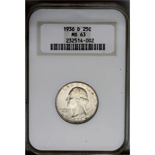 1936-D 25C MS63 NGC. Fully lustrous with a decent stri 1936-D[25C] MS63 NGC.