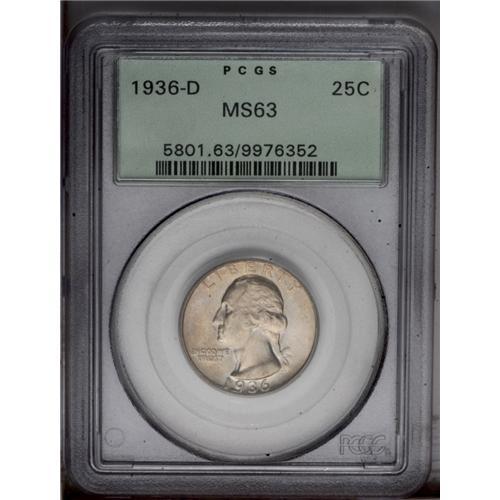 1936-D 25C MS63 PCGS. Well defined with glistening lus 1936-D[25C] MS63 PCGS.