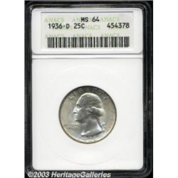 1936-D 25C MS64 ANACS. Well struck and satiny, with a few splashes of light patina and a small number of surface abrasions. Important notice: Heritage usually auctions material at the rate of 200-250 lots per hour. On some occasions eBay Live bid software or the Internet may not be able to keep up with the pace of the auction. We recommend placing a realistic absentee bid now as insurance to avoid disappointment. Occasionally the auctioneer may eliminate or reject an eBay Live bid, and the auctioneer may also reopen a lot after the close of the eBay live bidding (usually because we missed an audience bid), and may reject your bid even if it shows you as the winning bidder. By bidding via eBay Live, you agree that Heritage may award the lot to another bidder at its sole discretion under the circumstances described above or any other reasonable circumstances. Also please note that all Heritage lots purchased through eBay Live carry a 20% Buyer's Premium. Please make sure you read the Terms and Conditions before you bid.