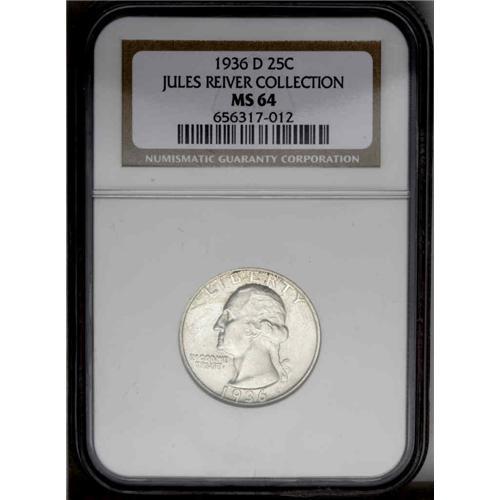 1936-D 25C MS64 NGC. One of the scarcer dates in the s 1936-D[25C] MS64 NGC.
