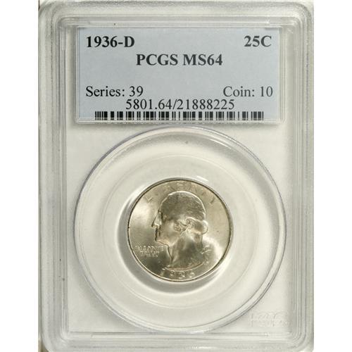 1936-D 25C MS64 PCGS. The obverse is essentially unton