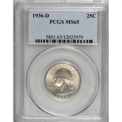 <B>1936-D 25C MS65 PCGS.</B></I> Pleasingly detailed for this early Denver issue with strongly lustrous tan-tinged surfaces. A gorgeous Gem example that would be a strong candidate for a similarly graded date set.<BR><BR><B>Coin Engraver:</B> John Flanagan<BR><BR><b>Shipping:</b> Coins & Currency (<a target="_blank" href="http://www.heritageauctions.com/common/shipping.php">view shipping information</a>)