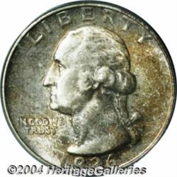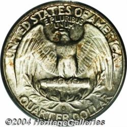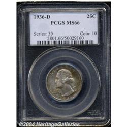 <B>1936-D<25C> MS66 PCGS.</B></I> The '36-D is one of the most elusive Washington quarters in an absolute sense as well as a technical one. This is an originally toned example that displays golden-olive and lavender toning that is scattered about each side in an irregular fashion. Population: 75 in 66, 7 finer (6/04). <BR><BR><B>Important notice:</B> Heritage usually auctions material at the rate of 200-250 lots per hour. On some occasions eBay Live bid software or the Internet may not be able to keep up with the pace of the auction. We recommend placing a realistic absentee bid now as insurance to avoid disappointment. Occasionally the auctioneer may eliminate or reject an eBay Live bid, and the auctioneer may also reopen a lot after the close of the eBay live bidding (usually because we missed an audience bid), and may reject your bid even if it shows you as the winning bidder. By bidding via eBay Live, you agree that Heritage may award the lot to another bidder at its sole discretion under the circumstances described above or any other reasonable circumstances. Since eBay bids are not shown to us until we open the lot on the floor, we treat those bids just like floor bids. In most cases the floor responds before the eBay bid is presented to us, due to Internet lag time, so for consistency we have made it a policy that floor bids are always considered first over tie eBay live bids. Also please note that all Heritage lots purchased through eBay Live carry a 20% Buyer's Premium. Please make sure you read the Terms and Conditions before you bid. </span></font></tr></table></td></tr></table>