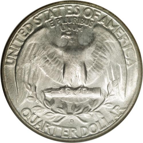 <B>1936-D<25C> MS67 NGC.</B></I> A peach and gunmetal-blue example, both lustrous and attractive. The 1936-D is a well known conditional rarity. Apparently, collectors during that Great Depression year concentrated on the plethora of commemorative half dollar issues, and neglected to set aside high grade 1936-D quarters in appreciable numbers. As of (1/06), NGC and PCGS have certified just 14 pieces at the MS67 level, with none finer.<BR><I>From The Houston Collection of Washington Quarters.</B></I>