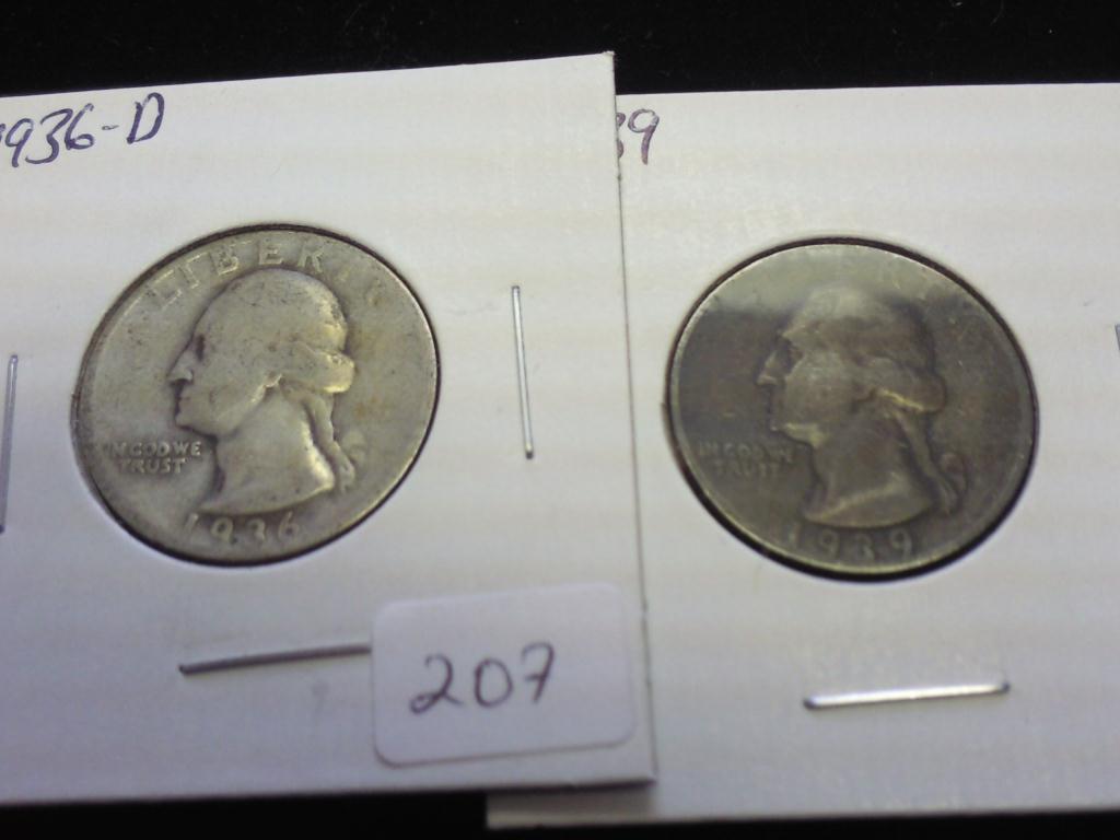 1936-D & 39 WASHINGTON SILVER QUARTERS