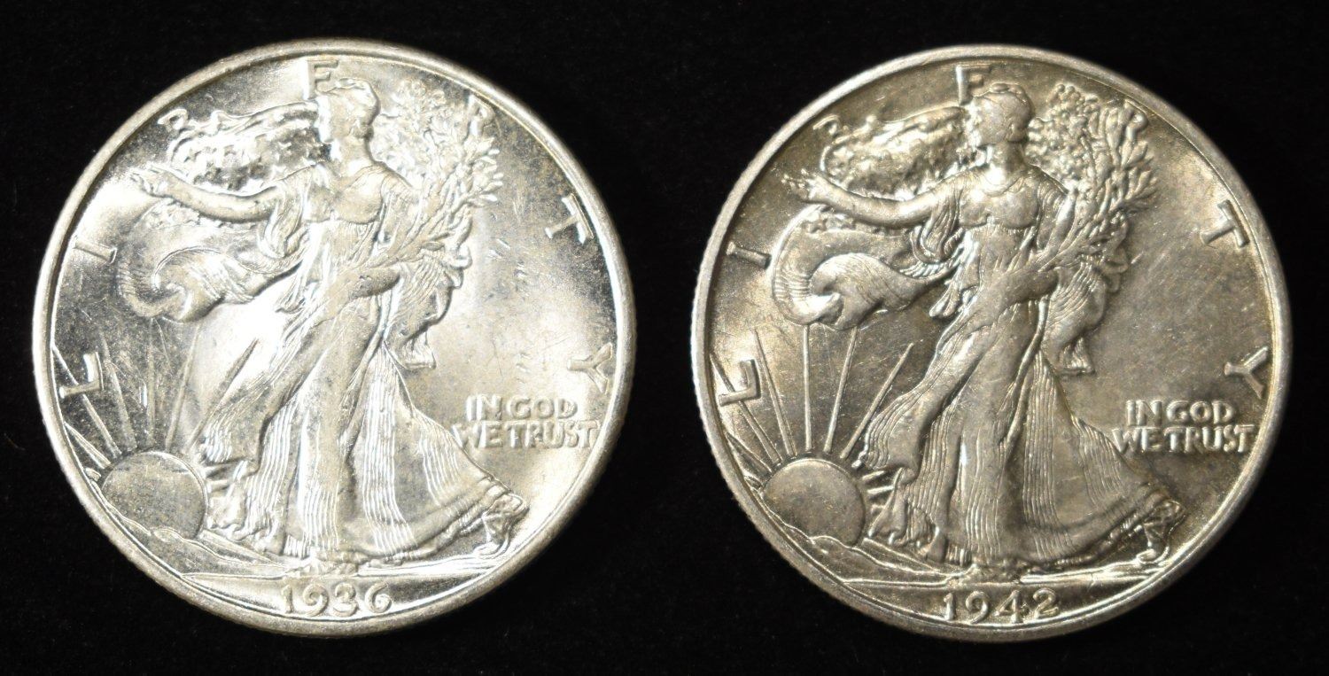 1936-D, 42-S WALKING LIBERTY HALF DOLLARS AU/BU