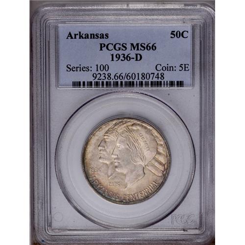 1936-D 50C Arkansas MS66 PCGS. Attractive light toning 1936-D[50C] Arkansas MS66 PCGS.