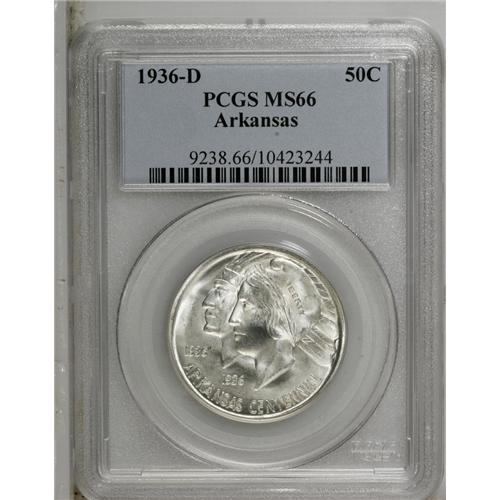 <B>1936-D 50C Arkansas MS66 PCGS.</B></I> Well struck and largely untoned with frosty luster. This appealing Denver-coined commemorative is one of just 9,660 produced.<BR><BR><b>Shipping:</b> Coin/Currency (<a target="_blank" href="http://www.heritageauctions.com/common/shipping.php">view shipping information</a>)