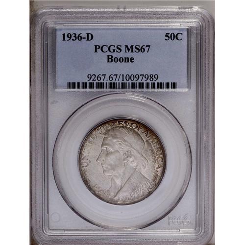 1936-D 50C Boone MS67 PCGS. An essentially mark-free S 1936-D[50C] Boone MS67 PCGS.