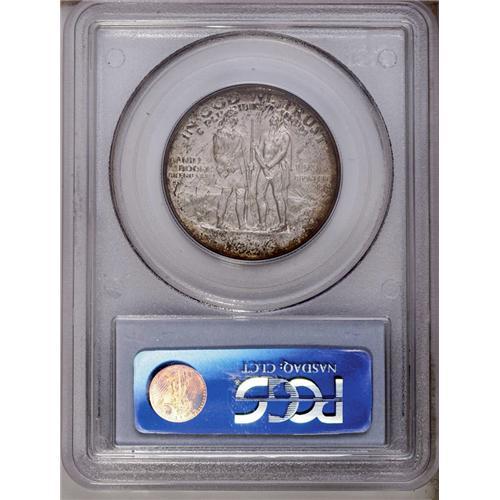 <B>1936-D<50C> Boone MS67 PCGS.</B></I> An essentially mark-free Superb Gem. The battleship-gray surfaces are enhanced by some deep reddish-brown toning near the borders. Conditionally scarce. Population: 20 in 67, none finer (4/06).