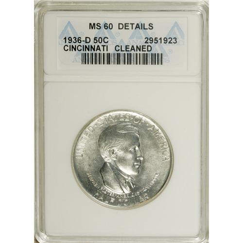 1936-D 50C Cincinnati--Cleaned--ANACS. MS60 Details.