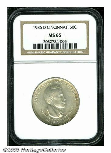 <B>1936-D<50C> Cincinnati MS65 NGC.</B></I> Well struck and carefully preserved, with smooth satin luster, a few small contact marks on each side, and slight russet peripheral toning on the right side of the obverse. A lovely Gem.<BR><I>From the Dr. Kurt Peters Collection.</B></I> From the Dr. Kurt Peters Collection.