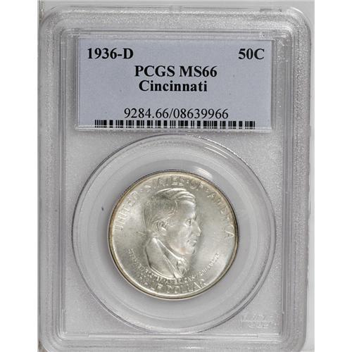 <B>1936-D<50C> Cincinnati MS66 PCGS.</B></I> A lustrous silver-white specimen on the obverse, with a touch of amber-gold added on the reverse rims, this lovely Premium Gem shows the cameo-like portrait of "America's troubadour" to excellent effect. Foster's cheek is quite clean, the luster on both sides is brilliant and attractive, and there are no mentionable distractions.