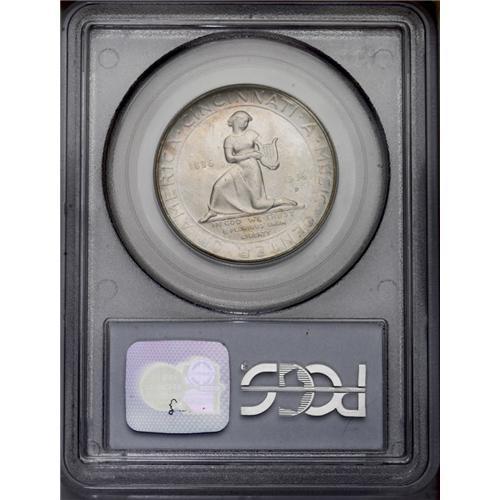 <B>1936-D<50C> Cincinnati MS66 PCGS.</B></I> Light gray-gold patina on the obverse and a bluish-gray cast on the reverse with a bit of magenta and amber at the border. Pretty and exceedingly clean. The sharp D mintmark stands out against the low-relief design. PCGS has graded 26 finer (3/06). <BR><BR><B>Important notice:</B> Heritage usually auctions material at the rate of 200-250 lots per hour. On some occasions eBay Live bid software or the Internet may not be able to keep up with the pace of the auction. We recommend placing a realistic absentee bid now as insurance to avoid disappointment. Occasionally the auctioneer may eliminate or reject an eBay Live bid, and the auctioneer may also reopen a lot after the close of the eBay live bidding (usually because we missed an audience bid), and may reject your bid even if it shows you as the winning bidder. By bidding via eBay Live, you agree that Heritage may award the lot to another bidder at its sole discretion under the circumstances described above or any other reasonable circumstances. Since eBay bids are not shown to us until we open the lot on the floor, we treat those bids just like floor bids. In most cases the floor responds before the eBay bid is presented to us, due to Internet lag time, so for consistency we have made it a policy that floor bids are always considered first over tie eBay live bids. Also please note that all Heritage lots purchased through eBay Live carry a 20% Buyer's Premium. Please make sure you read the Terms and Conditions before you bid. This lot is being auctioned in conjunction with a live floor auction by Heritage Galleries & Auctioneers. All final auction and invoice information will be supplied by Heritage Galleries & Auctioneers, and all other information should be considered preliminary. Lot:4909 <BR><BR><B>Winning Notification and Billing:</B> After the FINAL session in this auction is complete, Heritage will send e-mail and snail mail invoices. This process normally takes several days. All final auction and invoice information will be supplied by Heritage Galleries & Auctioneers, and all other information should be considered preliminary. <BR><BR>This auction will be conducted on a live auction floor and over the Internet through eBay Live. If you choose to place an absentee bid, please take a moment to <font color='#0000ff'><u><a href='http://pages.ebay.com/liveauctions/help/before/laabsentee.html'>learn how eBay Live absentee bidding works</a></u></font><font color='#000000'>