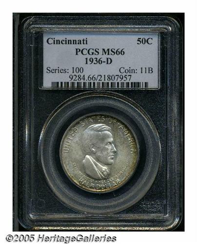 1936-D 50C Cincinnati MS66 PCGS. Speckled russet,
