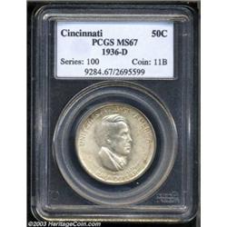 <table><tr><td><TABLE cellSpacing=0 cellPadding=0 width="100%" bgColor=#000000 border=0><TBODY> <TR><TD width="100%"><TABLE cellSpacing=1 cellPadding=3 width="100%" border=0><TBODY><TR><TD width="100%" bgColor=#79735c><FONT face=arial color=#ffffff size=3><B>Description</B> </FONT></TD></TR><TR><TD width="100%" bgColor=#ffffff><FONT face=arial size=2><B>1936-D 50C Cincinnati MS67 PCGS.</B></I> Highly lustrous with smooth, virtually unblemished surfaces. Each side has light gray patina with subtle accents of rose and emerald-green iridescence around the margins. Very scarce as such because of the large, open surfaces of the coin's design. Population: 21 in 67, 1 finer (10/03). </FONT></TD></TR></TBODY></TABLE></TD></TR></TBODY></TABLE><BR><A name=PricesRealized></A><TABLE cellSpacing=0 cellPadding=0 width="100%" bgColor=#000000 border=0><TBODY><TR><TD width="100%"><TABLE cellSpacing=1 cellPadding=3 width="100%" border=0><TBODY><TR><TD width="100%" bgColor=#79735c><A name=PR><FONT face=arial color=#ffffff size=3><B>Previous Prices from Heritage Auctions</B> </FONT></A></TD></TR><TR><TD bgColor=#f6f6ed><TABLE cellSpacing=0 cellPadding=0 width="100%" border=1><TBODY><TR><TD align=middle width="33%"><B>Date</B></TD><TD align=middle width="33%"><B>Service</B></TD><TD align=middle width="33%"><B>Price</B></TD></TR><TR bgColor=whitesmoke><TD width="33%"><B>10/24/2000</B></TD><TD width="33%">NGC</TD><TD width="33%">$2,800.00</TD></TR><TR bgColor=whitesmoke><TD width="33%"><B>01/11/2003</B></TD><TD width="33%">PCGS</TD><TD width="33%">$2,875.00</TD></TR><TR bgColor=whitesmoke><TD width="33%"><B>09/28/2002</B></TD><TD width="33%">PCGS</TD><TD width="33%">$4,600.00</TD></TR><TR bgColor=whitesmoke><TD width="33%"><B>02/13/1998</B></TD><TD width="33%">NGC</TD><TD width="33%">$2,860.00</TD></TR><TR bgColor=whitesmoke><TD width="33%"><B>08/19/1995</B></TD><TD width="33%">PCGS</TD><TD width="33%">$5,500.00</TD></TR></TBODY></TABLE></TD></TR><TR><TD bgColor=#ffffff><FONT face=arial size=1 ?>PLEASE NOTE: All prices realized reflect the final hammer price PLUS the buyer's premium in auctions that charge a buyer's premium. Each item has a notation at the top of the listing indicating whether that lot included a buyer's premium. Example: A item that sells with a final hammer price of $100 and a 20% buyer's premium will display with a price realized of $120. All information listed is intended to be as accurate as possible, but errors are possible. Please use this guide carefully and inform us of any inaccuracies. </FONT></TD></TR></TBODY></TABLE></TD></TR></TBODY></TABLE><BR><TABLE cellSpacing=0 cellPadding=0 width="100%" bgColor=#000000 border=0><TBODY><TR><TD width="100%"><TABLE cellSpacing=1 cellPadding=3 width="100%" border=0><TBODY><TR><TD width="100%" bgColor=#79735c colSpan=6><FONT face=arial color=#ffffff size=3><B>Price Guide*</B> </FONT></TD></TR><TR bgColor=#f6f6ed><TD align=middle><B>Grade</B> </TD><TD align=middle><B>Coin World<BR>(Trends)</B> </TD><TD align=middle><B>Numismedia<BR>Retail</B> </TD><TD align=middle><B>Numismedia<BR>Wholesale</B> </TD><TD align=middle><B>Coin<BR>Universe</B> </TD><TD align=middle><B>Heritage<BR>Value Index</B> </TD></TR><TR bgColor=#ffffff><TD align=middle>66</TD><TD align=right>---</TD><TD align=right>---</TD><TD align=right>$1,250.00</TD><TD align=right>$1,900.00</TD><TD align=right>$1,290.00</TD></TR><TR style="FONT-WEIGHT: bold" bgColor=#cccfdd><TD align=middle>67</TD><TD align=right>---</TD><TD align=right>---</TD><TD align=right>$2,750.00</TD><TD align=right>$6,000.00</TD><TD align=right>---</TD></TR><TR bgColor=#ffffff><TD align=middle>68</TD><TD align=right>---</TD><TD align=right>---</TD><TD align=right>---</TD><TD align=right>---</TD><TD align=right>---</TD></TR><TR bgColor=#ffffff><TD colSpan=6><FONT size=1>*All information listed is intended to be as accurate as possible, but errors are possible. No item may be returned or refused based on this information which is provided as a service to our customers. You should contact each pricing source directly to determine the accuracy of this information. </FONT></TD></TR></TBODY></TABLE></TD></TR></TBODY></TABLE><BR><TABLE cellSpacing=0 cellPadding=0 width="100%" bgColor=#000000 border=0><TBODY><TR><TD width="100%"><TABLE cellSpacing=1 cellPadding=3 width="100%" border=0><TBODY><TR><TD width="100%" bgColor=#79735c><FONT face=arial color=#ffffff size=3><B>Population Guide</B> </FONT></TD></TR><TR bgColor=#ffffff><TD align=middle><!-- Begin Output of Population Grid--><TABLE cellSpacing=0 cellPadding=0 width="100%" border=0><TBODY><TR><TD vAlign=center><TABLE cellSpacing=0 width="100%" border=1 cellsadding="3"><TBODY><TR><TD vAlign=center><TABLE cellSpacing=0 cellPadding=3 width="100%" border=1><TBODY><TR><TD vAlign=center align=middle bgColor=#f0f1e8 colSpan=2 <CENTER><FONT face=Arial size=2><B>PCGS Pop </B></FONT><CENTER></CENTER></TD><TD vAlign=center align=middle bgColor=#f0f1e8 colSpan=2><CENTER><FONT face=Arial size=2><B>NGC Pop</B></CENTER></FONT></TD></TR><TR><TD vAlign=center><FONT face=Arial size=2>(67)</FONT> </TD><TD vAlign=center align=right><FONT face=Arial size=2>21</FONT> </TD><TD vAlign=center><FONT face=Arial size=2>(67)</FONT> </TD><TD vAlign=center align=right><FONT face=Arial size=2>10</FONT> </TD></TR><TR><TD vAlign=center><FONT face=Arial size=2>(>67)</FONT> </TD><TD vAlign=center align=right><FONT face=Arial size=2>1</FONT> </TD><TD vAlign=center><FONT face=Arial size=2>(>67)</FONT> </TD><TD vAlign=center align=right><FONT face=Arial size=2>1</FONT> </TD></TR></TBODY></TABLE></TD></TR></TBODY></TABLE></TD></TR></TBODY></TABLE><!-- End Output of Population Grid--></TD></TR></TBODY></TABLE></TD></TR></TBODY></TABLE><BR><TABLE cellSpacing=0 cellPadding=0 width="100%" bgColor=#000000 border=0><TBODY><TR> Important notice: Heritage usually auctions material at the rate of 200-250 lots per hour. On some occasions eBay Live bid software or the Internet may not be able to keep up with the pace of 