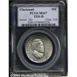 <B>1936-D<50C> Cincinnati MS67 PCGS.</B></I> Impeccably preserved with shimmering silver-gray surfaces and intermittent toning in lime-green, gray, red, and coppery-gold hues. Population: 23 in 67, 1 finer (3/04).<BR><I>From The Del Rio Collection, Part One.</B></I> <BR><BR><B>Important notice:</B> Heritage usually auctions material at the rate of 200-250 lots per hour. On some occasions eBay Live bid software or the Internet may not be able to keep up with the pace of the auction. We recommend placing a realistic absentee bid now as insurance to avoid disappointment. Occasionally the auctioneer may eliminate or reject an eBay Live bid, and the auctioneer may also reopen a lot after the close of the eBay live bidding (usually because we missed an audience bid), and may reject your bid even if it shows you as the winning bidder. By bidding via eBay Live, you agree that Heritage may award the lot to another bidder at its sole discretion under the circumstances described above or any other reasonable circumstances. Since eBay bids are not shown to us until we open the lot on the floor, we treat those bids just like floor bids. In most cases the floor responds before the eBay bid is presented to us, due to Internet lag time, so for consistency we have made it a policy that floor bids are always considered first over tie eBay live bids. Also please note that all Heritage lots purchased through eBay Live carry a 20% Buyer's Premium. Please make sure you read the Terms and Conditions before you bid. </span></font></tr></table></td></tr></table>