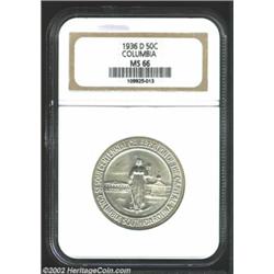 1936-D 50C Columbia MS66 NGC. This is a silver-gray example with smooth, Gem quality surfaces. Sugge