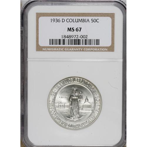 1936-D 50C Columbia MS67 NGC. NGC Census: (195/30)