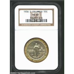 1936-D 50C Columbia MS67 NGC. The splendid golden-brown and yellow-green patina is lighter in the ce