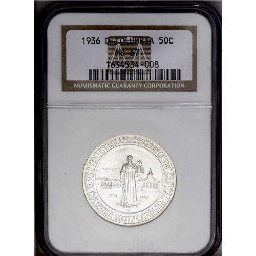 1936-D 50C Columbia MS67 NGC. This is a lovely Superb 1936-D[50C] Columbia MS67 NGC.