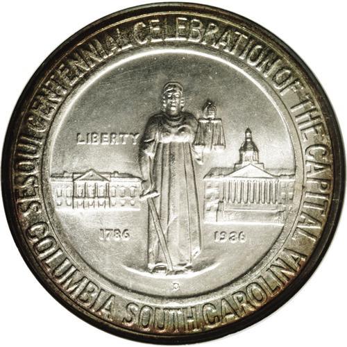 <B>1936-D 50C Columbia MS68 NGC.</B></I> One would be hard pressed to find a more attractive and technically sound representative of this D-mint Columbia issue. Silver-gray in the centers, the surfaces exhibit deep multicolored rim iridescence in brick-red, orange, gold, and russet shades. Razor-sharp striking definition has brought forth every design element, none of which are marred by grade-limiting abrasions. Census: 28 in 68, 0 finer (12/05).