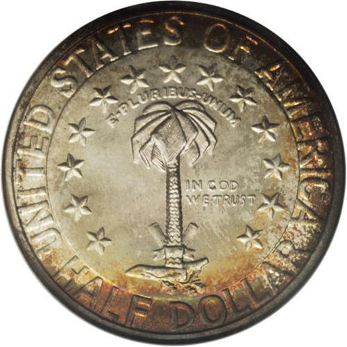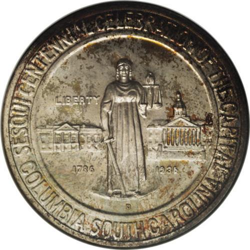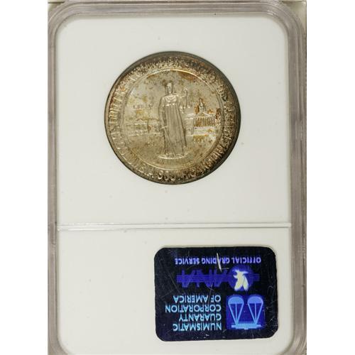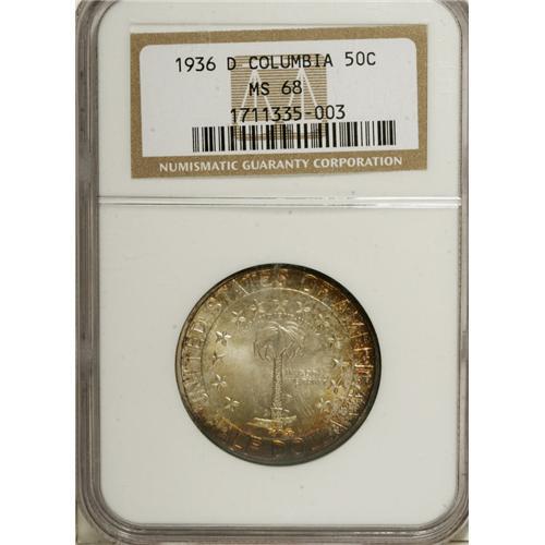 <B>1936-D 50C Columbia MS68 NGC.</B></I> Rich olive-ruby and russet patina sticks mostly to the margins, though the center of the reverse displays a few wayward specks as well. Satiny luster shines beneath. The figure on the obverse actually represents Justice, though the statutory inscription near her reads LIBERTY instead. One of just 8,009 pieces coined. Census: 17 in 68, 13 in 68 S, 0 finer (4/07).<BR><I>From The Cary & Cheryl Porter Collection.</B></I><BR><BR><b>Shipping:</b> Coins & Currency (<a target="_blank" href="http://www.heritageauctions.com/common/shipping.php">view shipping information</a>)