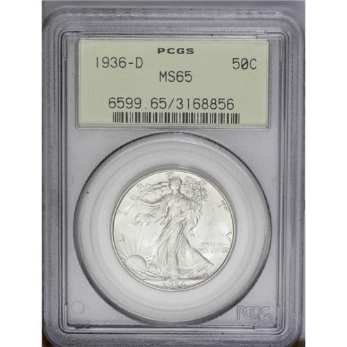 1936-D 50C MS65 PCGS. A blush of orange toning enriche 1936-D[50C] MS65 PCGS.