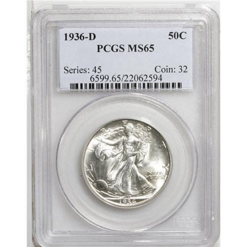 <B>1936-D 50C MS65 PCGS.</B></I> A frosty Gem, untoned with pretty luster. The strike is solid, as evidenced by Liberty's well-defined and separated thumb, and the surfaces have few marks.<BR><BR><b>Shipping:</b> Coin/Currency (<a target="_blank" href="http://www.heritageauctions.com/common/shipping.php">view shipping information</a>)