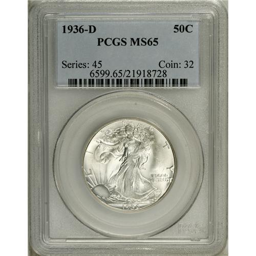 <B>1936-D 50C MS65 PCGS.</B></I> A thin veneer of gold-tan patina becomes just a tad deeper on the reverse. The few minor marks on the obverse are commensurate with the grade.<BR><BR><b>Shipping:</b> Coin/Currency (<a target="_blank" href="http://www.heritageauctions.com/common/shipping.php">view shipping information</a>)