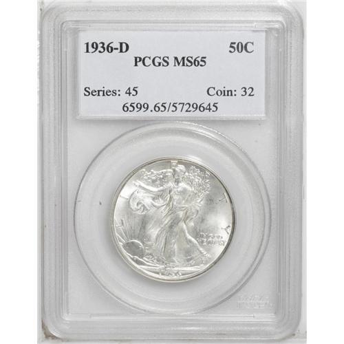 1936-D 50C MS65 PCGS. This solidly struck silver-blue