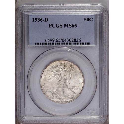 1936-D 50C MS65 PCGS. Well struck and highly lustrous, 1936-D[50C] MS65 PCGS.