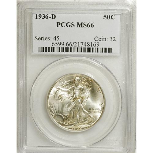 1936-D 50C MS66 PCGS. Intense mint frost shimmers over