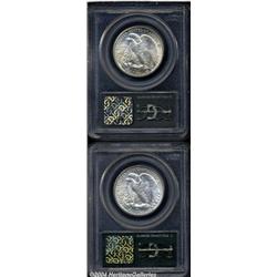 <B>1936-D<50C> MS66 PCGS,</B></I> mostly white with a needle sharp strike coruscant luster, this premium Gem Walker most visible distraction is in the form of a small abrasion on Liberty's neck; and a <B>1937-D MS66 PCGS,</B></I> typically marked and essentially white with light tan color around the edges and effulgent centers.<BR><I>From The Dr. Frank Lanza Collection of Walking Liberty Half Dollars.</B></I> 2 coins <BR><BR><B>Important notice:</B> Heritage usually auctions material at the rate of 200-250 lots per hour. On some occasions eBay Live bid software or the Internet may not be able to keep up with the pace of the auction. We recommend placing a realistic absentee bid now as insurance to avoid disappointment. Occasionally the auctioneer may eliminate or reject an eBay Live bid, and the auctioneer may also reopen a lot after the close of the eBay live bidding (usually because we missed an audience bid), and may reject your bid even if it shows you as the winning bidder. By bidding via eBay Live, you agree that Heritage may award the lot to another bidder at its sole discretion under the circumstances described above or any other reasonable circumstances. Since eBay bids are not shown to us until we open the lot on the floor, we treat those bids just like floor bids. In most cases the floor responds before the eBay bid is presented to us, due to Internet lag time, so for consistency we have made it a policy that floor bids are always considered first over tie eBay live bids. Also please note that all Heritage lots purchased through eBay Live carry a 20% Buyer's Premium. Please make sure you read the Terms and Conditions before you bid. </span></font></tr></table></td></tr></table>