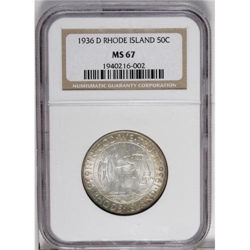 1936-D 50C Rhode Island MS67 NGC. The warm gold-orange