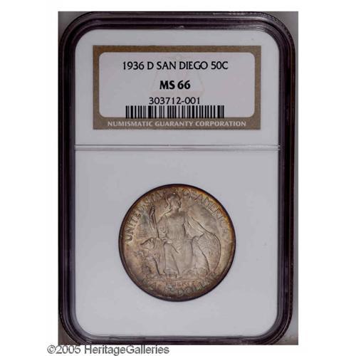 1936-D 50C San Diego MS66 NGC. Well struck and satiny, 1936-D[50C] San Diego MS66 NGC.