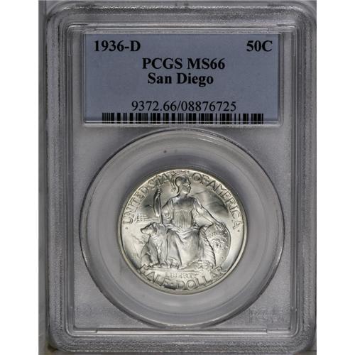 1936-D 50C San Diego MS66 PCGS, well struck and frosty