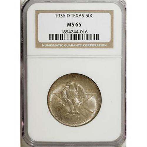 <B>1936-D 50C Texas MS65 NGC.</B></I> NGC Census: (391/842). PCGS Population (675/1083). Mintage: 9,039. Numismedia Wsl. Price for NGC/PCGS coin in MS65: $292. (#9387)<BR><I>From The Frank DuVall Collection of U.S. Commemoratives.</B></I><BR><BR><b>Shipping:</b> Coins & Currency (<a target="_blank" href="http://www.heritageauctions.com/common/shipping.php">view shipping information</a>\)