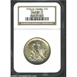 1936-D 50C Texas MS67 NGC. The obverse has a blush of golden-brown and olive hues, while the reverse