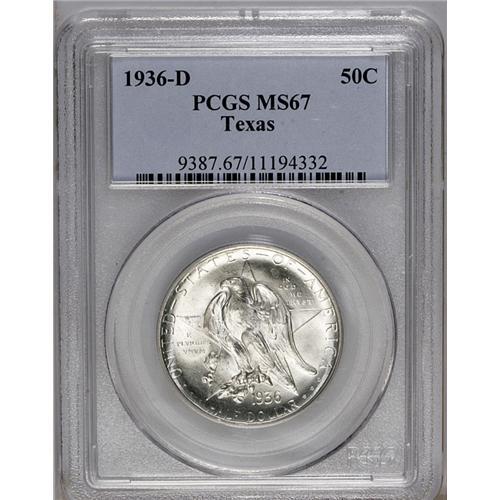 1936-D 50C Texas MS67 PCGS. A bright, lightly frosted