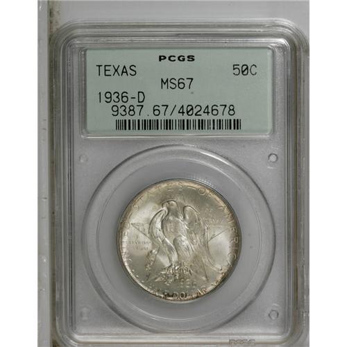 1936-D 50C Texas MS67 PCGS. A frosty piece with pleasi