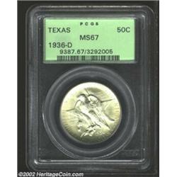 1936-D 50C Texas MS67 PCGS. Bold and satiny luster with nary a hint of toning or color. Important no
