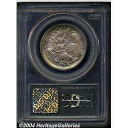 <table><tr><td><table><tr><td>1936-D 50C Texas MS67 PCGS. Magenta central areas highlighted by sea-green and gold on the peripheries. Nary a mark is to be found on this beautiful piece. Population: 201 in 67, 12 finer (3/04). <BR><BR><B>Important notice:</B> Heritage usually auctions material at the rate of 200-250 lots per hour. On some occasions eBay Live bid software or the Internet may not be able to keep up with the pace of the auction. We recommend placing a realistic absentee bid now as insurance to avoid disappointment. Occasionally the auctioneer may eliminate or reject an eBay Live bid, and the auctioneer may also reopen a lot after the close of the eBay live bidding (usually because we missed an audience bid), and may reject your bid even if it shows you as the winning bidder. By bidding via eBay Live, you agree that Heritage may award the lot to another bidder at its sole discretion under the circumstances described above or any other reasonable circumstances. Since eBay bids are not shown to us until we open the lot on the floor, we treat those bids just like floor bids. In most cases the floor responds before the eBay bid is presented to us, due to Internet lag time, so for consistency we have made it a policy that floor bids are always considered first over tie eBay live bids. Also please note that all Heritage lots purchased through eBay Live carry a 20% Buyer's Premium. Please make sure you read the Terms and Conditions before you bid. <BR><BR><B>IMPORTANT ANNOUNCEMENT ABOUT RESERVES:</B> Heritage now divulges all reserves on its web site 7 days before every auction. If you want to know whether the reserve on this lot has been met, and if not, what the reserve amount is, please visit this lot page on the HeritageCoin.com web site, or email: bid@HeritageGalleries.com </span></font></td></tr></table></td></tr></table>