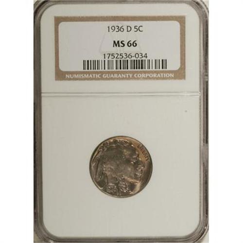 1936-D 5C MS66 NGC. NGC Census: (576/10). PCGS Pop