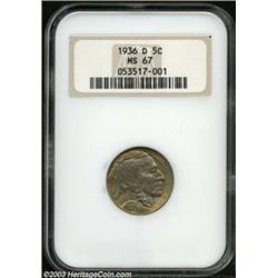 <TABLE cellSpacing=0 cellPadding=0 width="100%" bgColor=#000000 border=0><TBODY><TR><TD width="100%"><TABLE cellSpacing=1 cellPadding=3 width="100%" border=0><TBODY><TR><TD width="100%" bgColor=#79735c><FONT face=arial color=#ffffff size=3><B>Description</B> </FONT></TD></TR><TR><TD width="100%" bgColor=#ffffff><FONT face=arial size=2><B>1936-D 5C MS67 NGC.</B></I> Colorfully patinated with some softness of strike on selected highpoints. </FONT></TD></TR></TBODY></TABLE></TD></TR></TBODY></TABLE><BR><A name=PricesRealized></A><TABLE cellSpacing=0 cellPadding=0 width="100%" bgColor=#000000 border=0><TBODY><TR><TD width="100%"><TABLE cellSpacing=1 cellPadding=3 width="100%" border=0><TBODY><TR><TD width="100%" bgColor=#79735c><A name=PR><FONT face=arial color=#ffffff size=3><B>Previous Prices from Heritage Auctions</B> </FONT></A></TD></TR><TR><TD bgColor=#f6f6ed><TABLE cellSpacing=0 cellPadding=0 width="100%" border=1><TBODY><TR><TD align=middle width="33%"><B>Date</B></TD><TD align=middle width="33%"><B>Service</B></TD><TD align=middle width="33%"><B>Price</B></TD></TR><TR bgColor=whitesmoke><TD width="33%"><B>04/27/2002</B></TD><TD width="33%">PCGS</TD><TD width="33%">$1,725.00</TD></TR><TR bgColor=whitesmoke><TD width="33%"><B>01/06/1996</B></TD><TD width="33%">PCGS</TD><TD width="33%">$440.00</TD></TR><TR bgColor=whitesmoke><TD width="33%"><B>01/06/1996</B></TD><TD width="33%">PCGS</TD><TD width="33%">$440.00</TD></TR><TR bgColor=whitesmoke><TD width="33%"><B>07/01/1996</B></TD><TD width="33%">PCGS</TD><TD width="33%">$770.00</TD></TR><TR bgColor=whitesmoke><TD width="33%"><B>06/01/2000</B></TD><TD width="33%">PCGS</TD><TD width="33%">$863.00</TD></TR><TR bgColor=whitesmoke><TD width="33%"><B>06/01/2000</B></TD><TD width="33%">PCGS</TD><TD width="33%">$863.00</TD></TR><TR bgColor=whitesmoke><TD width="33%"><B>03/01/2003</B></TD><TD width="33%">PCGS</TD><TD width="33%">$1,035.00</TD></TR><TR bgColor=whitesmoke><TD width="33%"><B>07/29/2003</B></TD><TD width="33%">PCGS</TD><TD width="33%">$1,150.00</TD></TR><TR bgColor=whitesmoke><TD width="33%"><B>07/29/2003</B></TD><TD width="33%">PCGS</TD><TD width="33%">$1,150.00</TD></TR><TR bgColor=whitesmoke><TD width="33%"><B>07/29/2003</B></TD><TD width="33%">PCGS</TD><TD width="33%">$1,207.50</TD></TR><TR bgColor=whitesmoke><TD width="33%"><B>05/03/2003</B></TD><TD width="33%">PCGS</TD><TD width="33%">$1,840.00</TD></TR><TR bgColor=whitesmoke><TD width="33%"><B>05/03/2003</B></TD><TD width="33%">PCGS</TD><TD width="33%">$1,840.00</TD></TR></TBODY></TABLE></TD></TR><TR><TD bgColor=#ffffff><FONT face=arial size=1 ?>PLEASE NOTE: All prices realized reflect the final hammer price PLUS the buyer's premium in auctions that charge a buyer's premium. Each item has a notation at the top of the listing indicating whether that lot included a buyer's premium. Example: A item that sells with a final hammer price of $100 and a 20% buyer's premium will display with a price realized of $120. All information listed is intended to be as accurate as possible, but errors are possible. Please use this guide carefully and inform us of any inaccuracies. </FONT></TD></TR></TBODY></TABLE></TD></TR></TBODY></TABLE><BR><TABLE cellSpacing=0 cellPadding=0 width="100%" bgColor=#000000 border=0><TBODY><TR><TD width="100%"><TABLE cellSpacing=1 cellPadding=3 width="100%" border=0><TBODY><TR><TD width="100%" bgColor=#79735c colSpan=6><FONT face=arial color=#ffffff size=3><B>Price Guide*</B> </FONT></TD></TR><TR bgColor=#f6f6ed><TD align=middle><B>Grade</B> </TD><TD align=middle><B>Coin World<BR>(Trends)</B> </TD><TD align=middle><B>Numismedia<BR>Retail</B> </TD><TD align=middle><B>Numismedia<BR>Wholesale</B> </TD><TD align=middle><B>Coin<BR>Universe</B> </TD><TD align=middle><B>Heritage<BR>Value Index</B> </TD></TR><TR bgColor=#ffffff><TD align=middle>66</TD><TD align=right>$250.00</TD><TD align=right>$220.00</TD><TD align=right>$176.00</TD><TD align=right>$235.00</TD><TD align=right>$174.83</TD></TR><TR style="FONT-WEIGHT: bold" bgColor=#cccfdd><TD align=middle>67</TD><TD align=right>---</TD><TD align=right>---</TD><TD align=right>$845.00</TD><TD align=right>$1,500.00</TD><TD align=right>$1,128.75</TD></TR><TR bgColor=#ffffff><TD align=middle>68</TD><TD align=right>---</TD><TD align=right>---</TD><TD align=right>$15,000.00</TD><TD align=right>---</TD><TD align=right>---</TD></TR><TR bgColor=#ffffff><TD colSpan=6><FONT size=1>*All information listed is intended to be as accurate as possible, but errors are possible. No item may be returned or refused based on this information which is provided as a service to our customers. You should contact each pricing source directly to determine the accuracy of this information. </FONT></TD></TR></TBODY></TABLE></TD></TR></TBODY></TABLE><BR><TABLE cellSpacing=0 cellPadding=0 width="100%" bgColor=#000000 border=0><TBODY><TR><TD width="100%"><TABLE cellSpacing=1 cellPadding=3 width="100%" border=0><TBODY><TR><TD width="100%" bgColor=#79735c><FONT face=arial color=#ffffff size=3><B>Population Guide</B> </FONT></TD></TR><TR bgColor=#ffffff><TD align=middle><!-- Begin Output of Population Grid--><TABLE cellSpacing=0 cellPadding=0 width="100%" border=0><TBODY><TR><TD vAlign=center><TABLE cellSpacing=0 width="100%" border=1 cellsadding="3"><TBODY><TR><TD vAlign=center><TABLE cellSpacing=0 cellPadding=3 width="100%" border=1><TBODY><TR><TD vAlign=center align=middle bgColor=#f0f1e8 colSpan=2 <CENTER><FONT face=Arial size=2><B>PCGS Pop </B></FONT><CENTER></CENTER></TD><TD vAlign=center align=middle bgColor=#f0f1e8 colSpan=2><CENTER><FONT face=Arial size=2><B>NGC Pop</B></CENTER></FONT></TD></TR><TR><TD vAlign=center><FONT face=Arial size=2>(67)</FONT> </TD><TD vAlign=center align=right><FONT face=Arial size=2>30</FONT> </TD><TD vAlign=center><FONT face=Arial size=2>(67)</FONT> </TD><TD vAlign=center align=right><FONT face=Arial size=2>4</FONT> </TD></TR><TR><TD vAlign=center><FONT face=Arial size=2>(>67)</FONT> </TD><TD vAlign=center align=right><