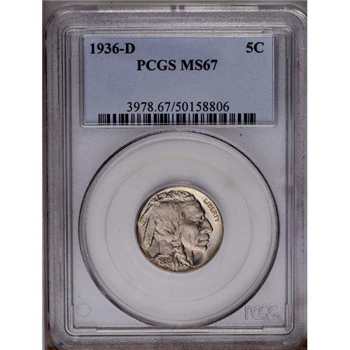 1936-D 5C MS67 PCGS. The splendidly original, olive-gr 1936-D[5C] MS67 PCGS.